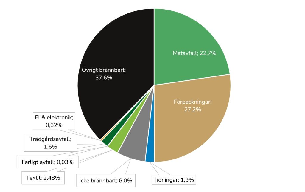 Restavfallet bestod bara av 38 % faktiskt restavfall. Resten var material som egentligen ska sorteras ut: